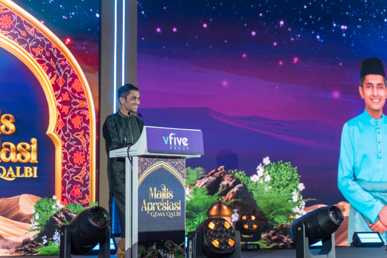 Mohd Syafiq Abdullah (tengah) mengaminkan doa sempena Majlis Apresiasi Gema Qalbi VFive Group 2025 di Putrajaya.