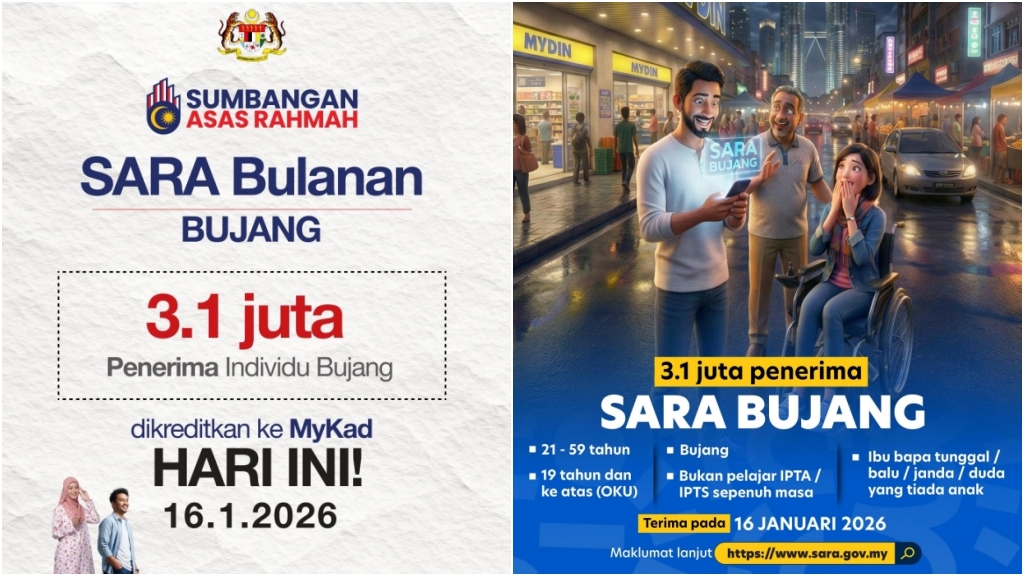 "Seperti yang telah saya janjikan, bermula 16 Januari 2026, seramai 3.1 juta individu bujang akan menerima manfaat SARA yang dikreditkan secara terus ke dalam MyKad masing-masing.