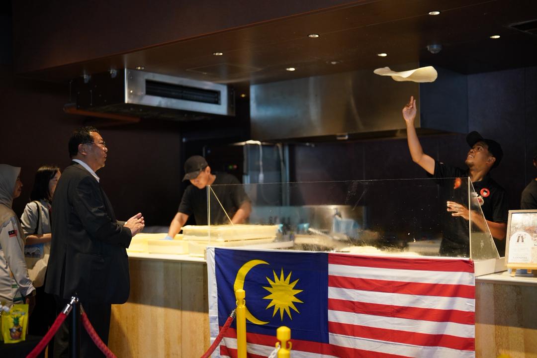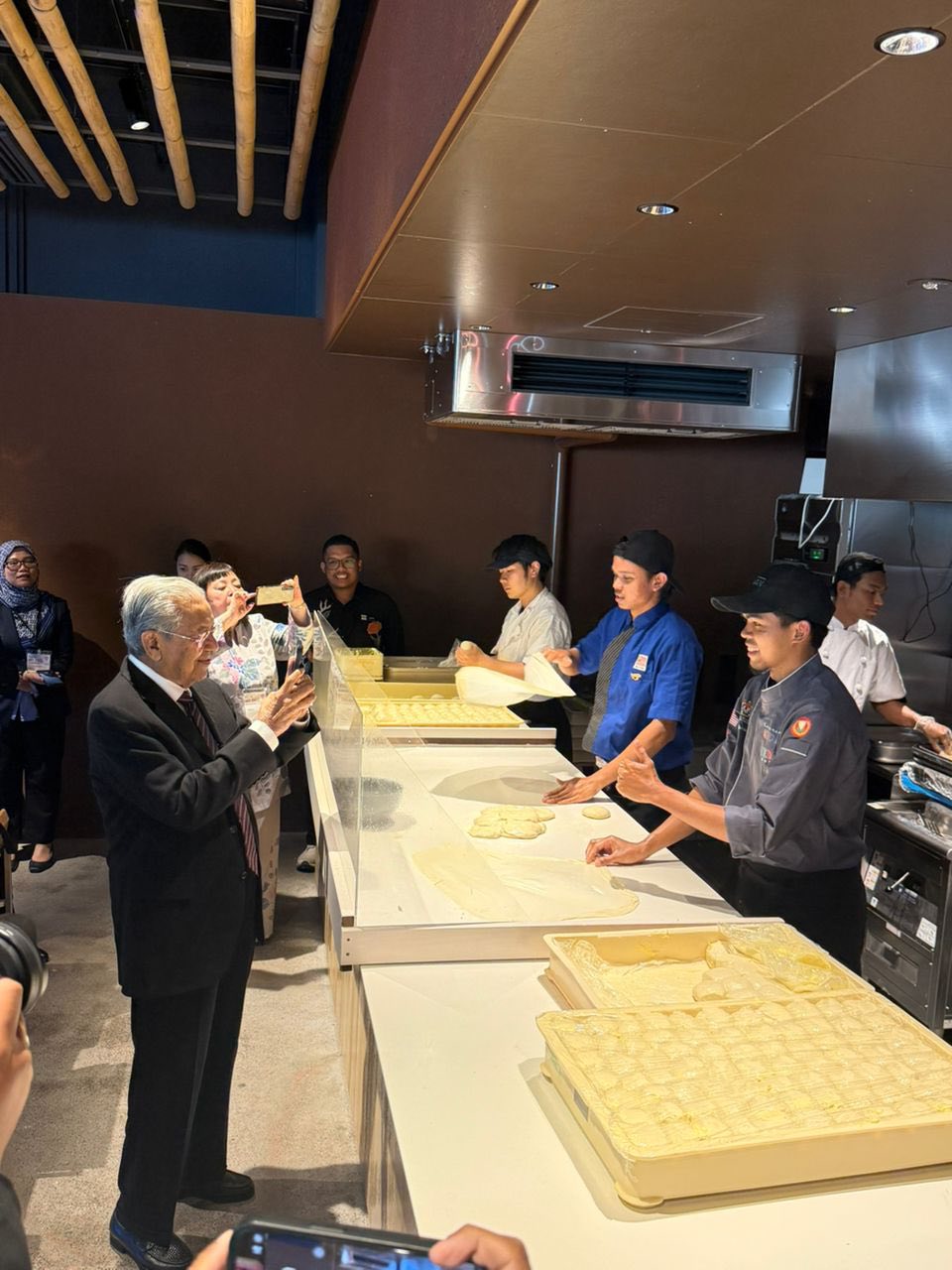 Bekas Perdana Menteri Malaysia, Tun Dr. Mahathir Mohamad, merakam aksi Muiz Ruzaini menebar roti canai di sebuah restoran di Osaka, Jepun.