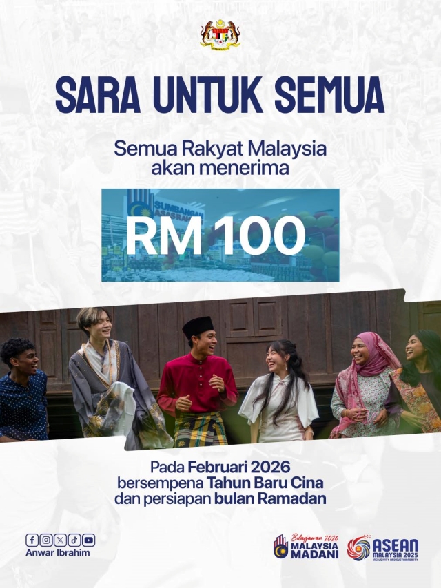 - SARA Untuk Semua diteruskan – RM100 kepada 22 juta rakyat dewasa