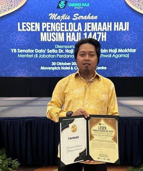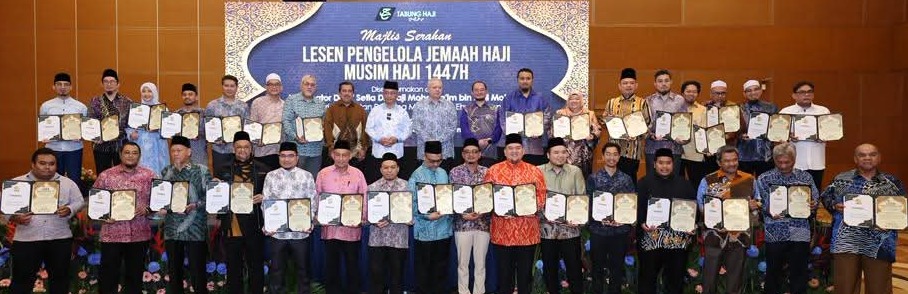 Wakil-wakil syarikat Pengelola Jemaah Haji (PJH) bergambar kenangan selepas menerima Watikah Lesen Pengelola Jemaah Haji bagi musim Haji 1447H/2026M.