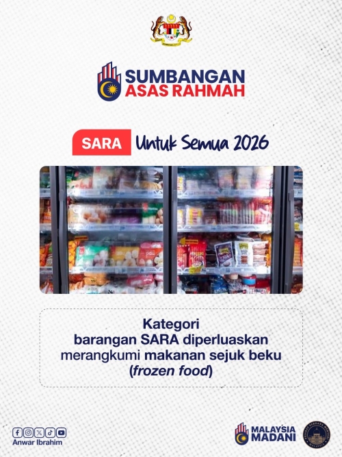 Selain itu, Kerajaan juga bersetuju untuk meluaskan kategori barangan SARA untuk merangkumi makanan sejuk beku (frozen food).