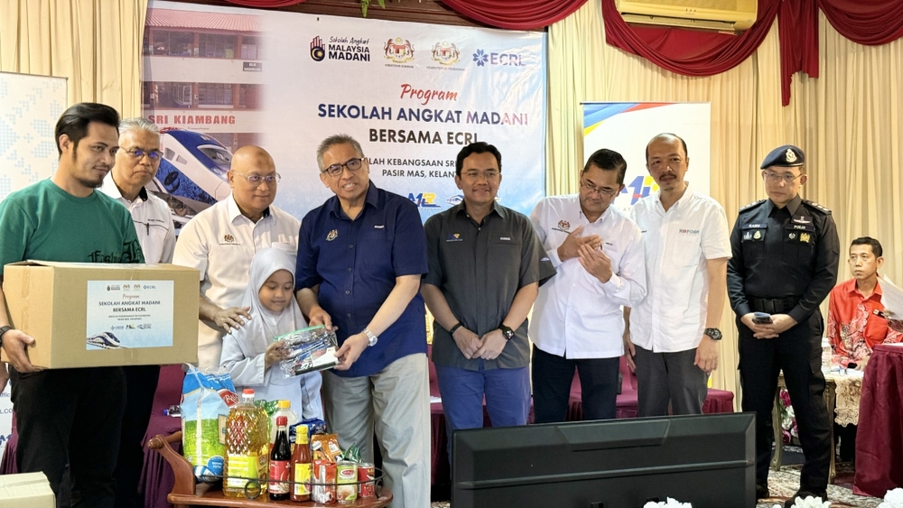 Malaysia Rail Link Sdn Bhd (MRL) yang meneruskan komitmennya terhadap pembangunan komuniti di sepanjang jajaran Projek ECRL menyalurkan sumbangan RM5,000 kepada SK Sri Kiambang yang terletak di Kampung Repek, Pasir Mas sempena ‘Program Sekolah Angkat Madani Bersama ECRL’. Juga memberi sumbangan bakul makanan. - KitaReporters