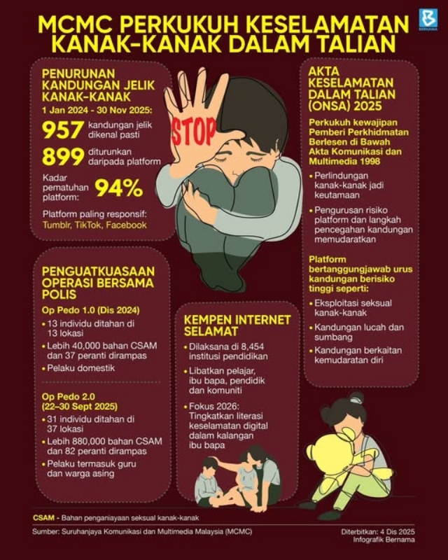 "Selain itu, inisiatif ini juga bagi memastikan semua platform terlibat untuk memikul tanggungjawab yang lebih jelas terhadap keselamatan pengguna, khususnya dalam melindungi kanak-kanak dan keluarga," tegas MCMC.
