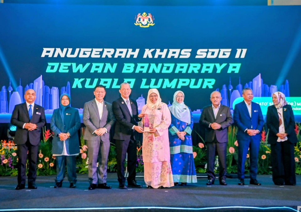 Datuk Bandar Kuala Lumpur, Datuk Seri TPr Dr Maimunah Mohd Sharif menerima plak Anugerah Khas SDG II daripada Fadillah Yusof.