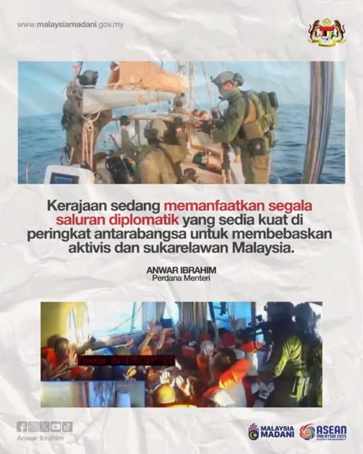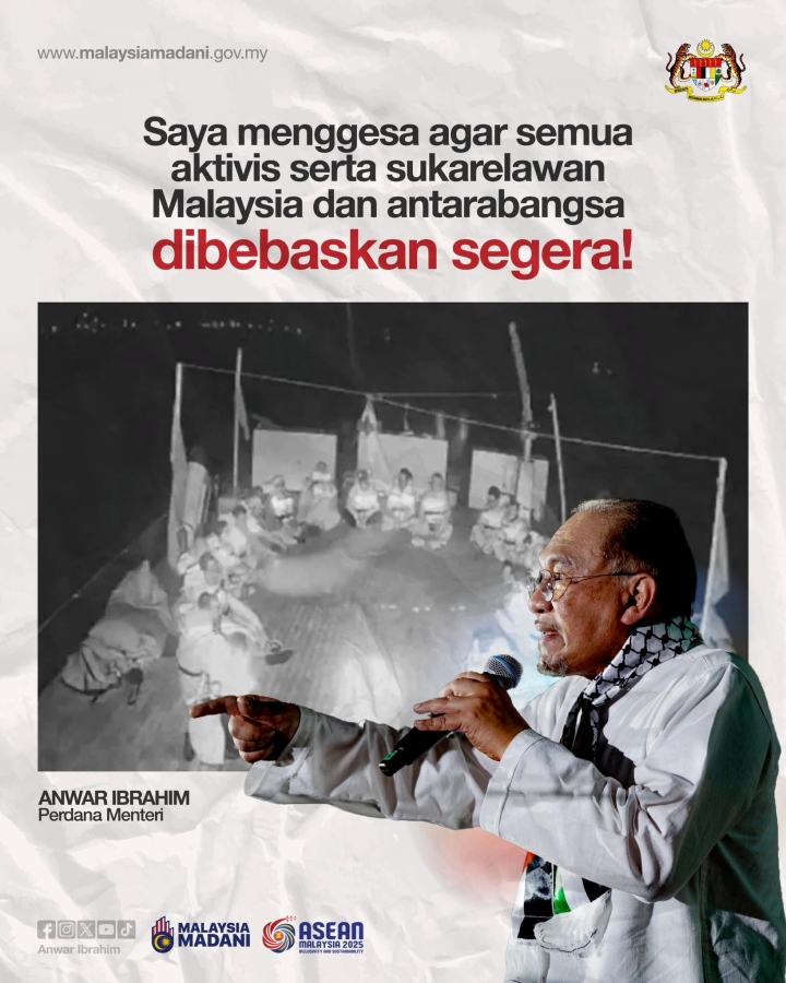 "Lantaran, saya menggesa agar semua aktivis serta sukarelawan Malaysia dan antarabangsa dibebaskan dalam kadar segera!