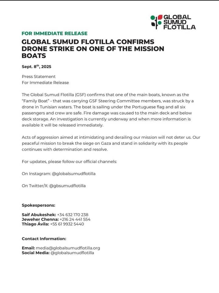 Majlis Perundingan Pertubuhan Islam Malaysia (MAPIM) menyeru masyarakat antarabangsa, Pertubuhan Bangsa-Bangsa Bersatu (PBB), dan semua kerajaan yang bertanggungjawab untuk mengambil tindakan segera bagi melindungi Flotila Sumud Global (Global Sumud Flotilla atau GSF) 2025, konvoi awam yang dalam perjalanan ke Gaza membawa bantuan kemanusiaan.