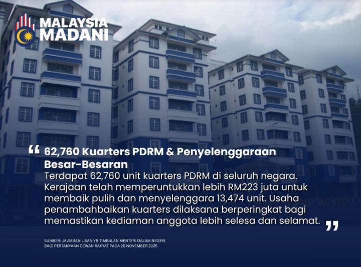 Sebanyak 62,760 unit kuarters yang akan disiapkan bagi tempoh 2025-2030 termasuklah permohonan tambahan 16,830 unit kuarters yang telah dibawa oleh PDRM kepada ICU, Jabatan Perdana Menteri dengan anggaran kos RM3.158 bilion adalah suatu lonjakan besar untuk kesejahteraan warga PDRM.