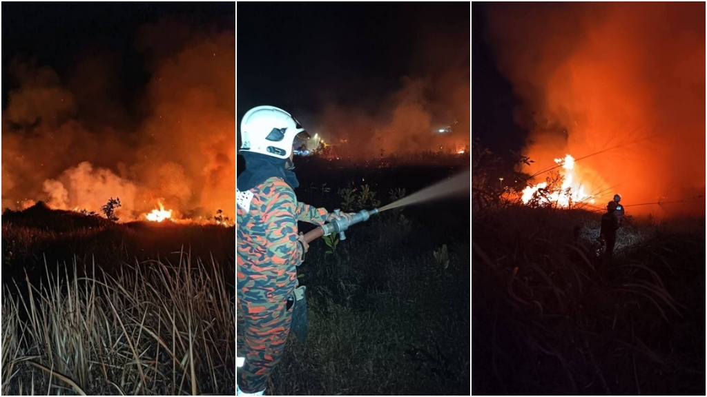 Akibat pembakaran sampah terbuka! Belukar dan lalang 0.81h terbakar! Lebih 2 jam untuk padamkan!