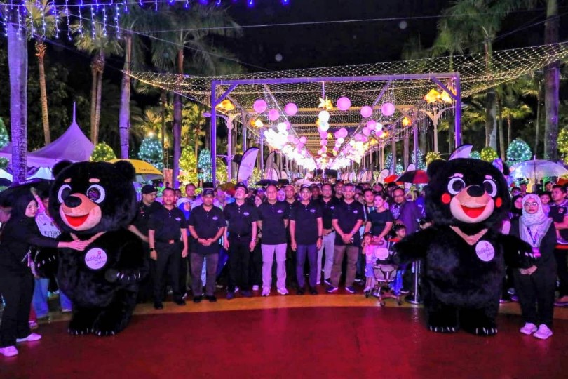 Mohd Sakeri Abdul Kadir bergambar kenangan bersama orang ramai dan Beruang Matahari yang menjadi maskot Tahun Melawat Malaysia 2026.