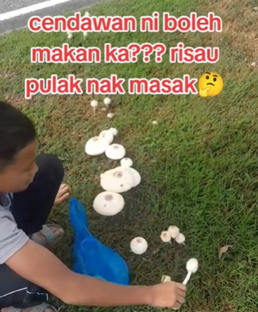 Dia menceritakan bagaimana dia menemani anak lelakinya memetik cendawan liar di tepi jalan. Teruja dengan hasil ‘tuaian’, dia memuat naik video bertanyakan kepada netizen: