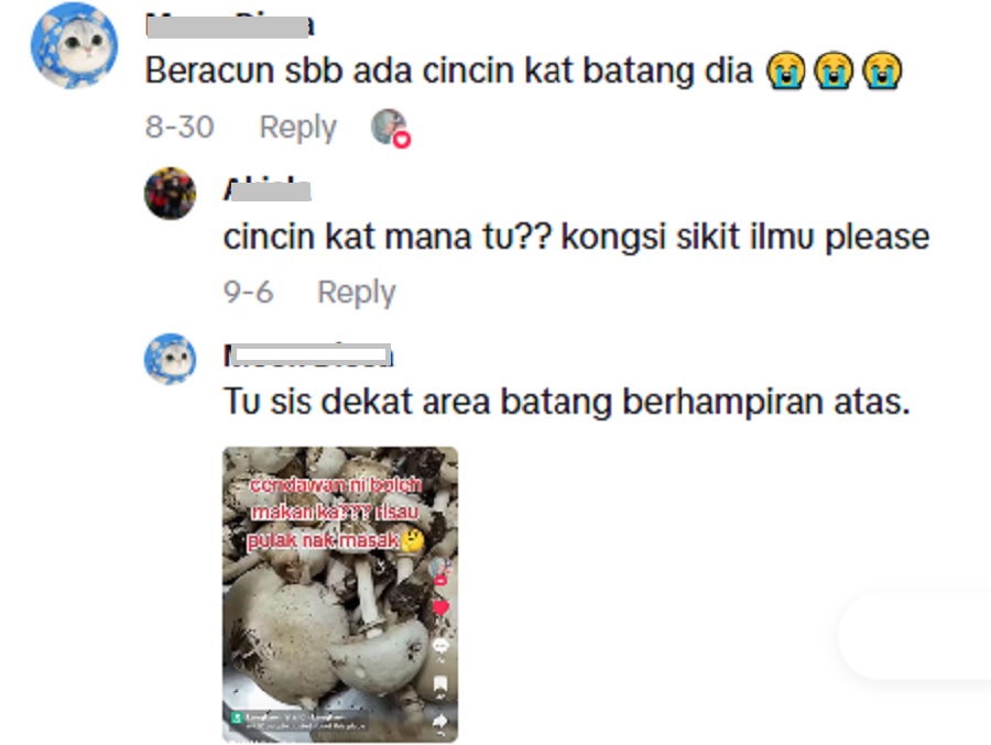 Rata-rata netizen sepakat bahawa cendawan tersebut beracun kerana mempunyai ‘cincin’ pada batangnya, tanda klasik cendawan berbahaya.