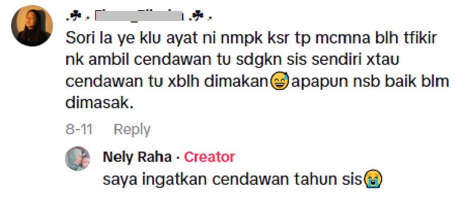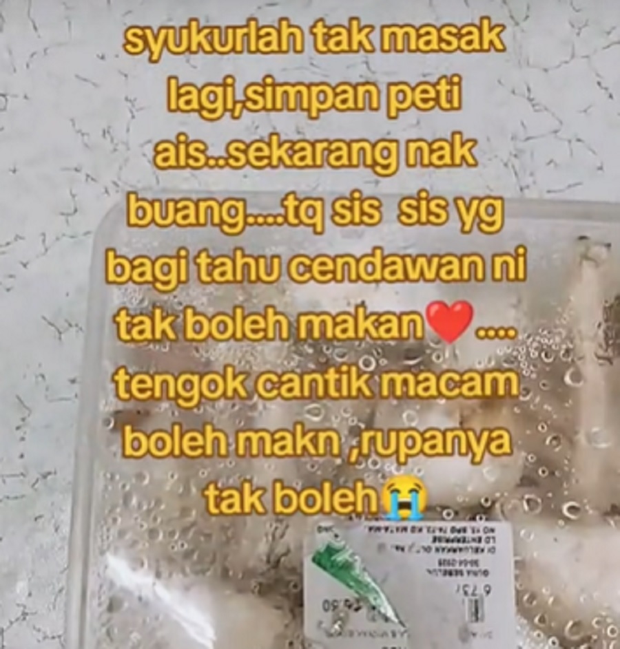 “Syukurlah tak masak lagi, simpan dalam peti ais. Sekarang nak buang. Terima kasih semua yang bagi tahu. Tengok cantik macam boleh makan, rupa-rupanya tak boleh.”