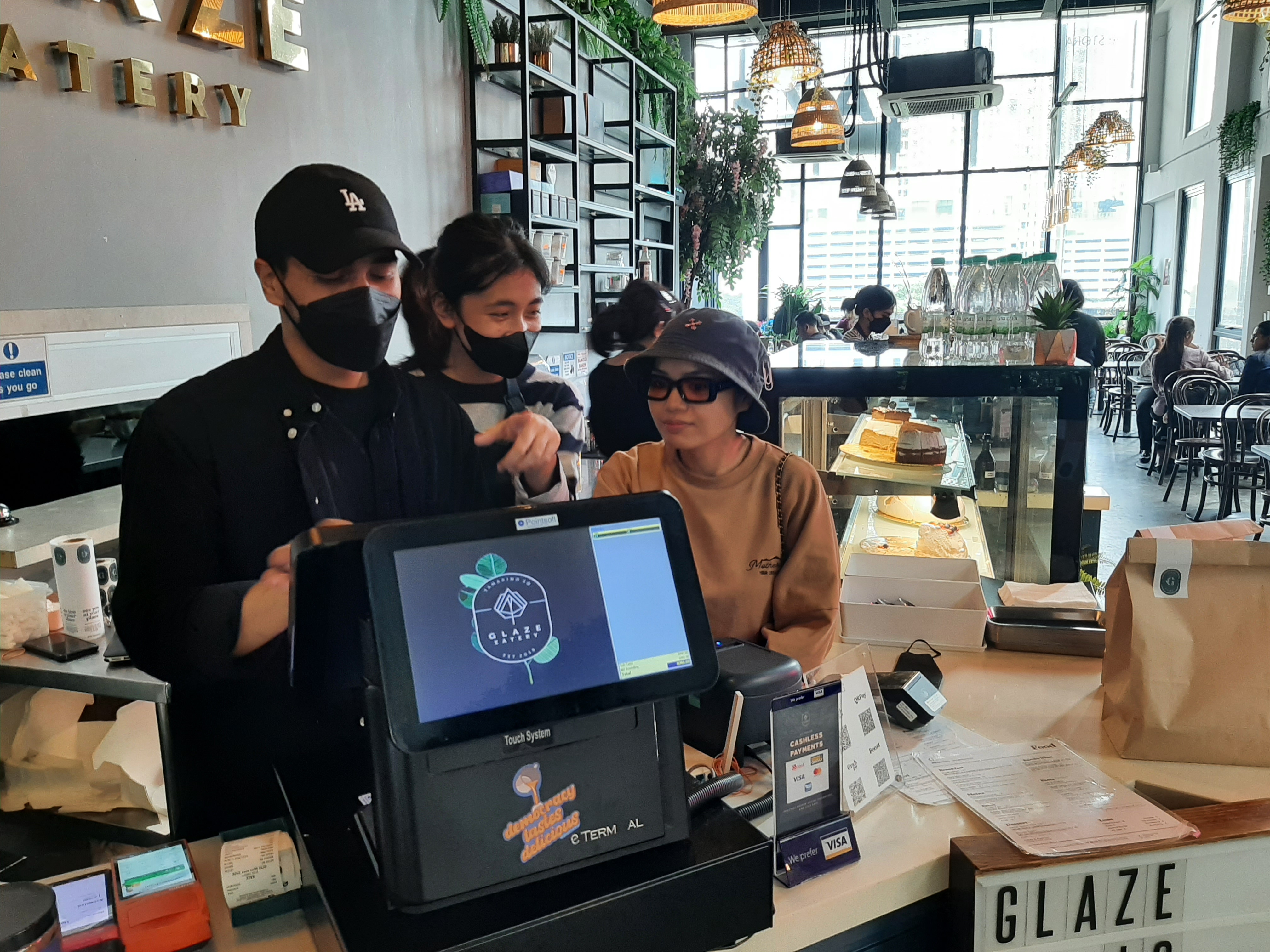 Fateen Aqeela (kanan) memantau pekerja mengemas kini pesanan yang diterima daripada pelanggan di Glaze Eatery, Cyberjaya.
