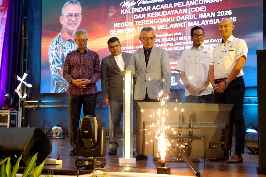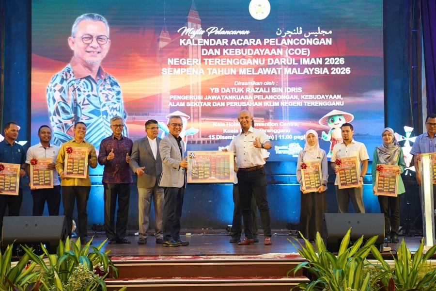 Majlis pelancaran Kalendar Acara Pelancongan dan Kebudayaan (COE) Negeri Terengganu 2026 disempurnakan oleh Razali Idris (dua dari kiri) dalam satu majlis yang telah berlangsung di sebuah hotel di Kuala Nerus, Terengganu pada 15 Disember 2025.