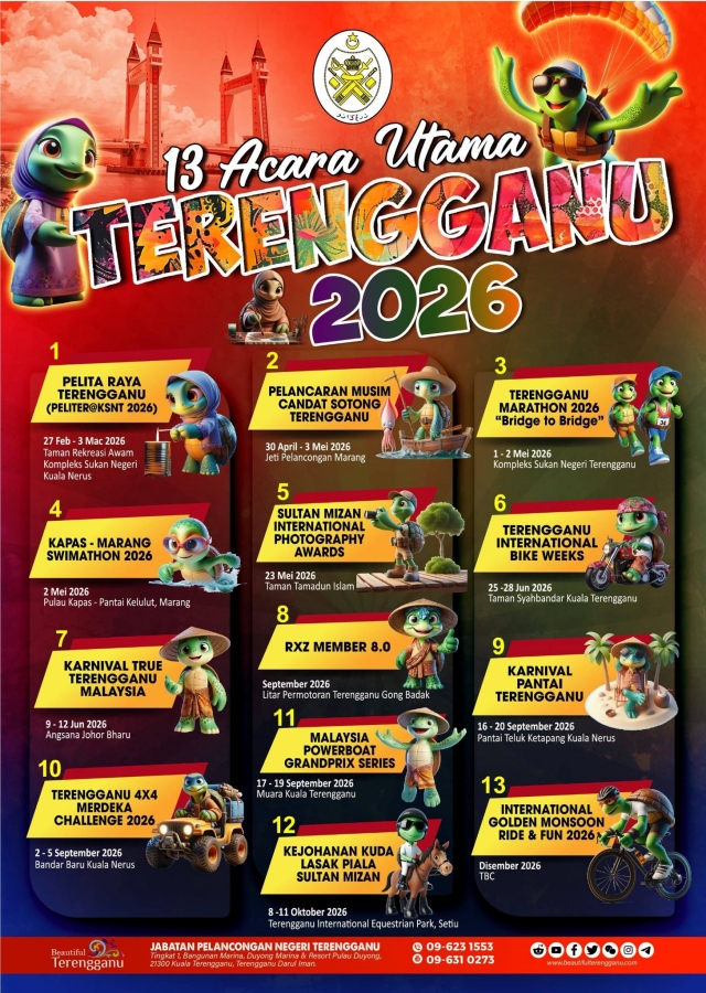 13 acara utama menjadi tumpuan disenaraikan dalam Kalendar Acara Pelancongan dan Kebudayaan (COE) Negeri Terengganu 2026 sebagai usaha untuk menyokong kempen Tahun Melawat Malaysia 2026 (TMM 2026).