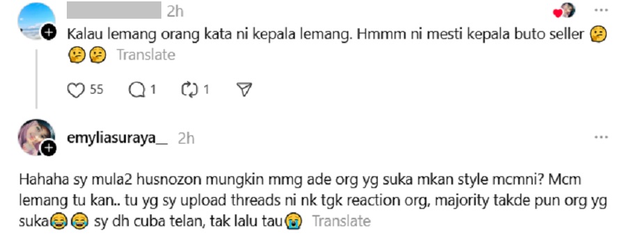 "Kalau saya jadi peniaga, rasanya kalau dah macam ni, saya takkan jual. Biarlah rugi sikit daripada mudaratkan pelanggan,” luahnya dalam Threads.