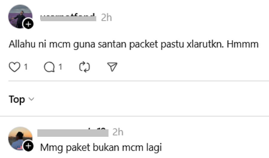 “Allahu, ni macam guna santan paket kemudian tak larutkan. Hmmm,” kongsi netizen.