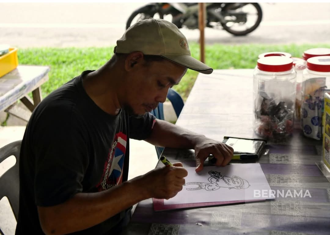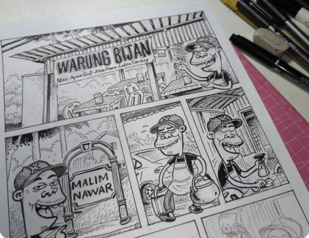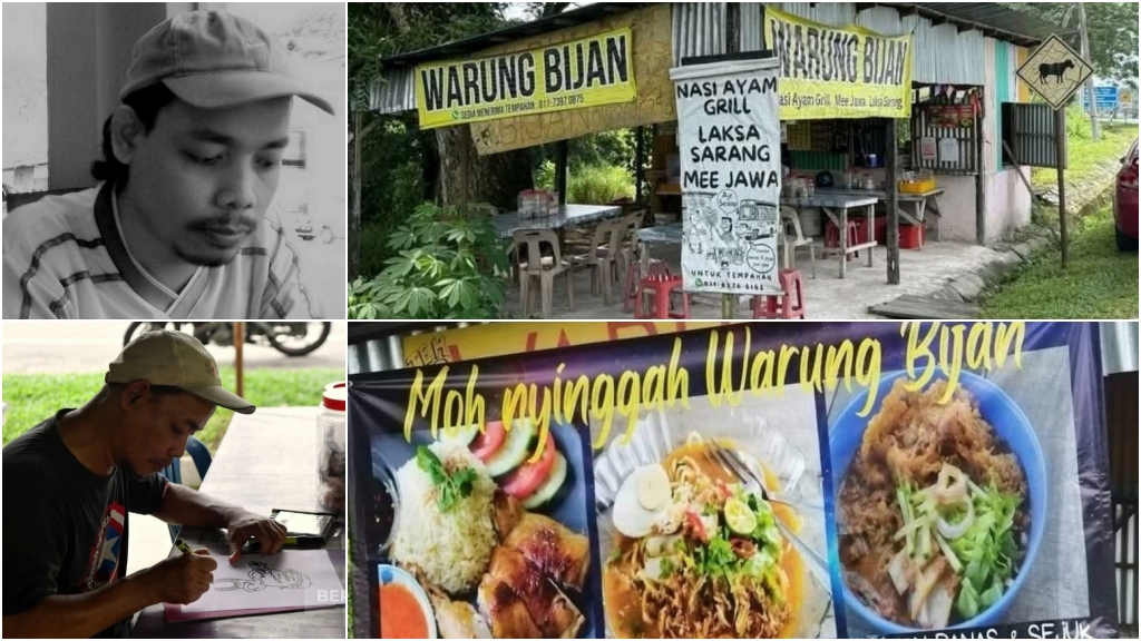 Lakaran kartun Bijan yang ada hubung kait dengan warungnya di Malim Nawar.