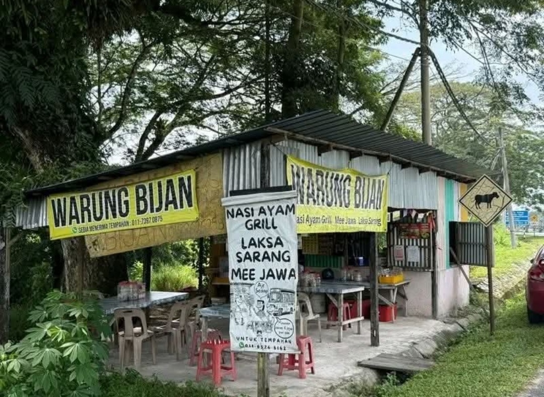 Warung makan Bijan dalam ketenangan suasana kampung di tepi jalan besar di Malim Nawar, Perak.