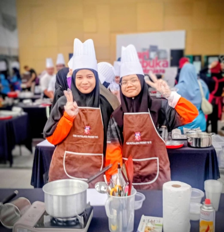 Dua peserta yang mewakili sekolah di Putrajaya sempat bergambar sebelum memulakan cabaran Pertandingan Memasak Junior Chef sempena Hari Terbuka Putrajaya 2026.