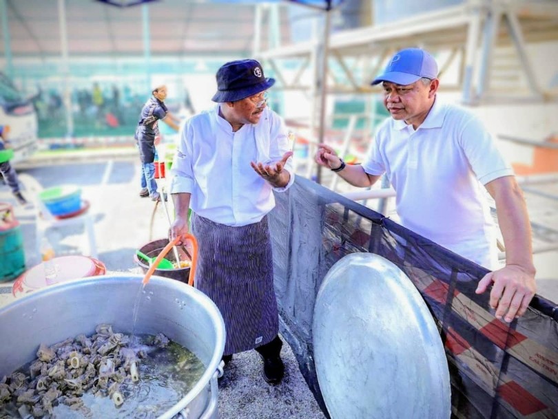 Fadlun Mak Ujud (kanan) bertanyakan sesuatu kepada cef yang mengambil bahagian pada Kenduri Rakyat sempena Karnival Putrajaya 2025.