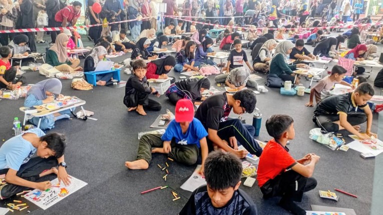 Peserta pertandingan mewarna tekun menyiapkan lukidsn mereka sempena Karnival Putrajaya 2025.