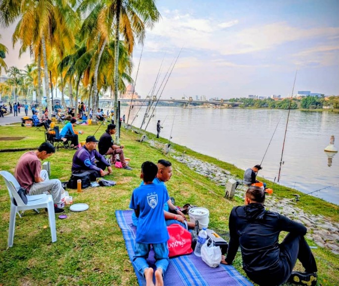 Selain sukan air, pengunjung juga boleh bersantai di tepi tasik sambil mengambil peluang memancing.