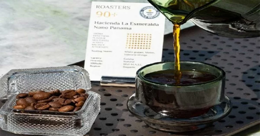 Minuman eksklusif ini menggunakan biji kopi Panamanian Geisha yang sangat jarang ditemukan. Ia ditanam di ladang terkenal Hacienda La Esmeralda, Panama.