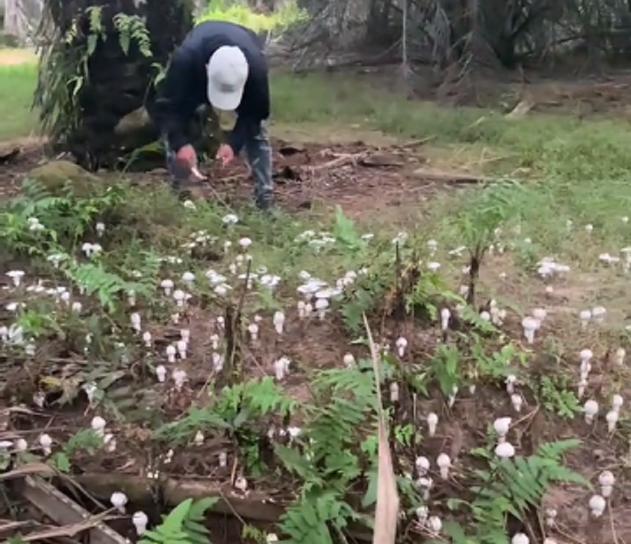 “Kalau tak singgah beli barang tadi mesti tak jumpa cendawan ni,” katanya dalam video tersebut.