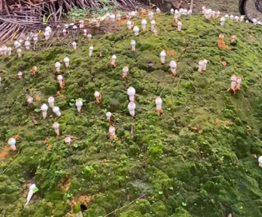 Video yang ditonton lebih seribu kali itu menunjukkan beberapa batang cendawan busut segar baru tumbuh dari tanah.