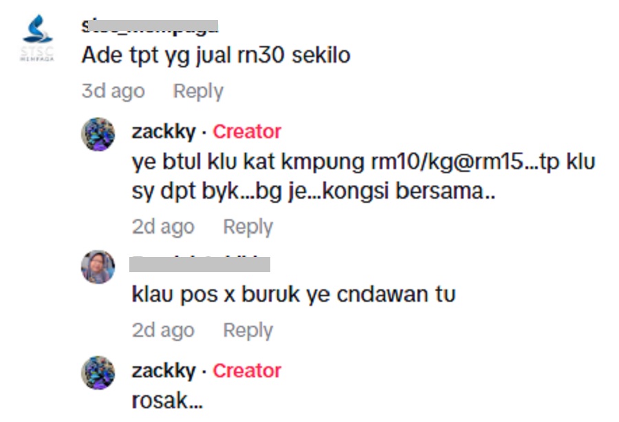Ada netizen melaporkan harga mencecah RM30 sekilogram di sesetengah tempat. Menariknya, pencipta video sendiri lebih memilih untuk berkongsi rezeki.