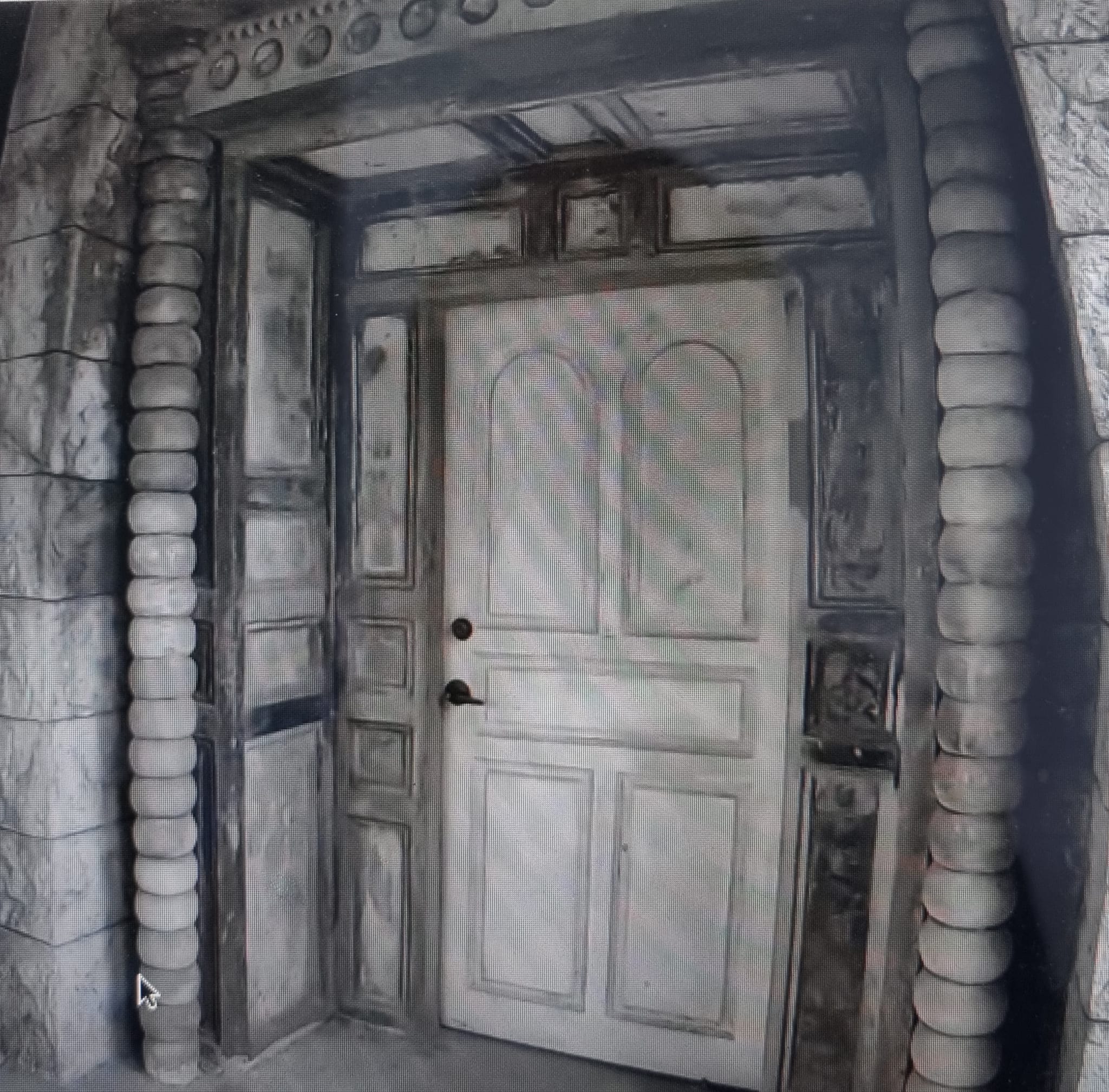 Pintu masuk utama Istana Bunian dengan tiang hiasan diperbuat daripada susunan bebatuan bulat mengapit daun pintu. - Kredit foto: YouTube Blog Faiz