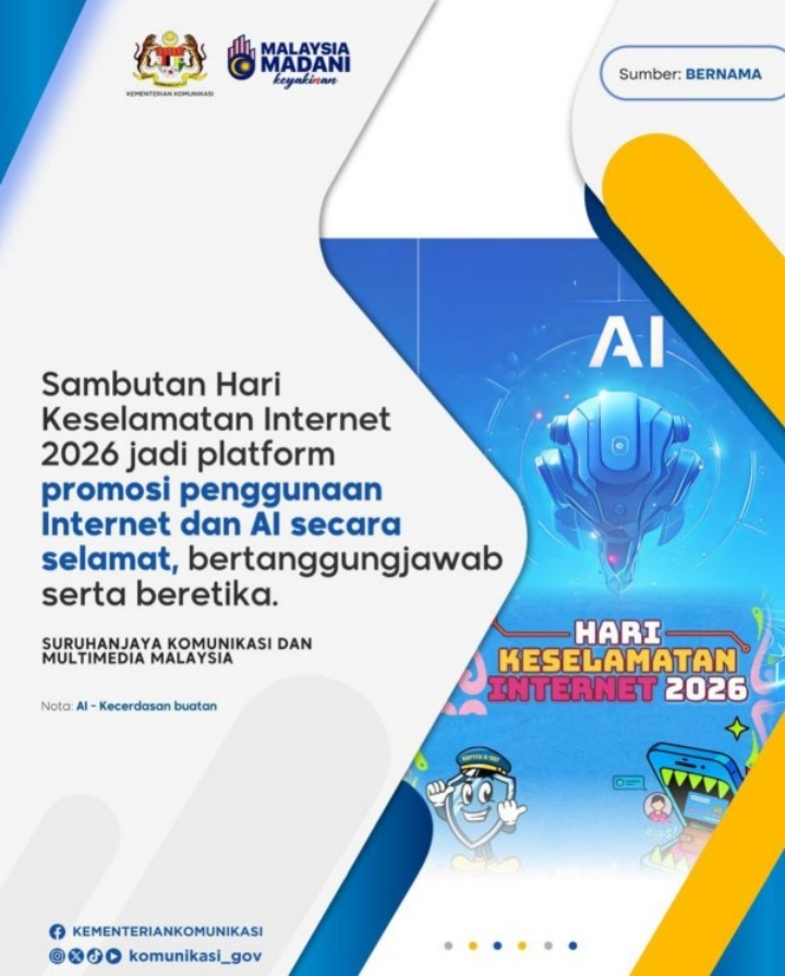 Untuk maklumat lanjut, orang ramai boleh melayari laman rasmi Hari Keselamatan Internet 2026: https://mcmc.gov.my/ms/hki2026/home.