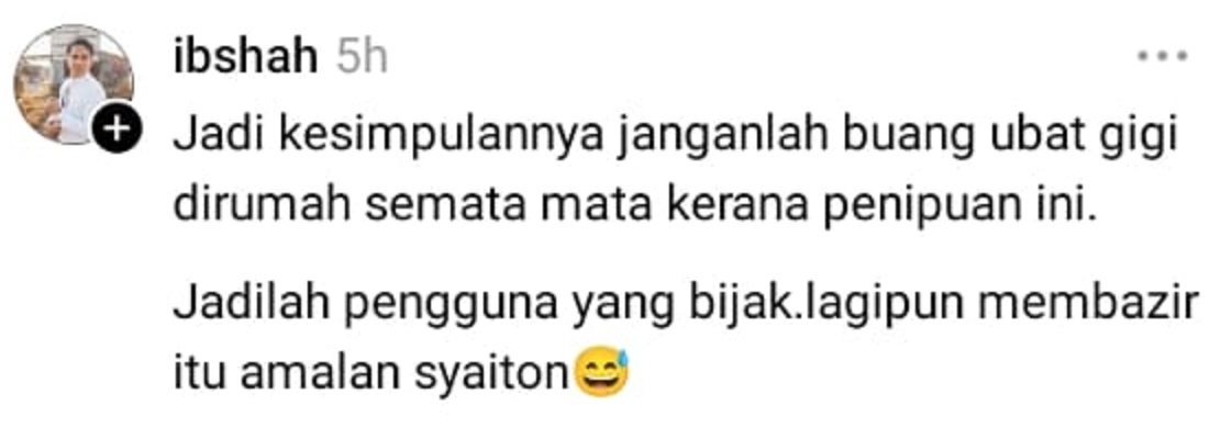 Bukan sebagai tanda apa kandungan ubat gigi itu," tulisnya.