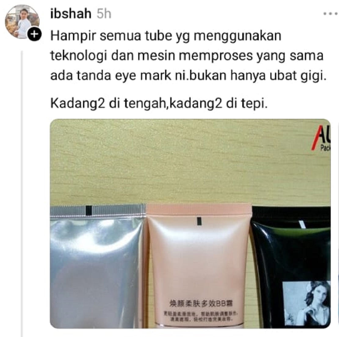 Tambahnya lagi, hampir semua tiub yang menggunakan teknologi dan mesin, akan ada eye mark. Tidak hanya ubat gigi sahaja. Eye mark tersebut juga didatangkan dalam pelbagai warna kerana berbeza kilang.