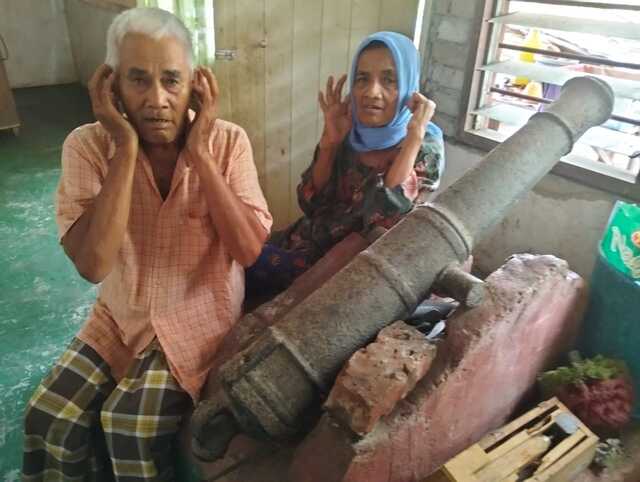 Asiah M. Isa serta suaminya Abdul Jalil Osman menyimpan meriam Tok Mengkudu di kediaman mereka di Kampung Mengkudu, Segamat