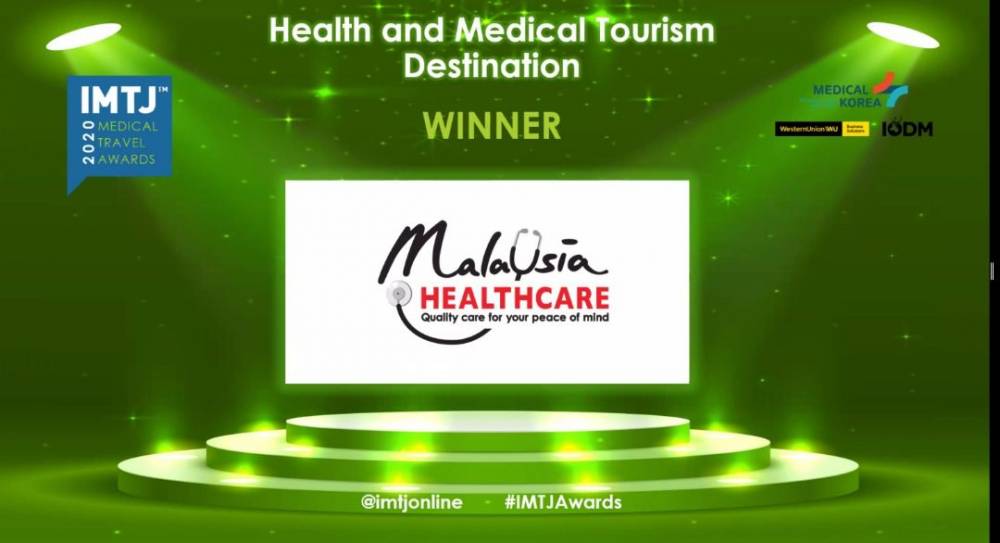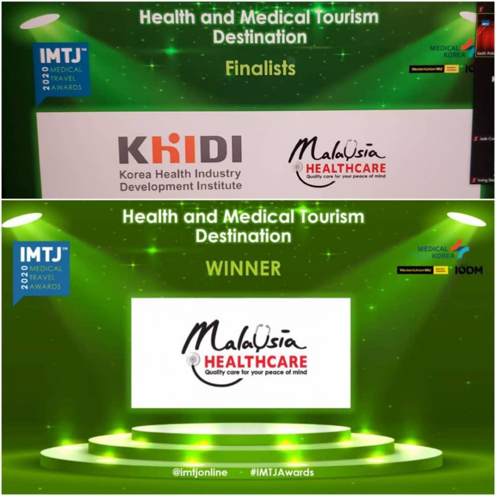 Untuk kali keempat, Malaysia terus dinobatkan dan diberi pengiktirafan pada Anugerah Pelancongan Perubatan 2020 anjuran International Medical Travel Journal (IMTJ) baru-baru ini, dengan memenangi anugerah rebutan ramai, Pelancongan Kesihatan dan Perubatan: Destinasi Terbaik Tahun Ini ( ‘Health and Medical Tourism: Destination of the Year’ ).