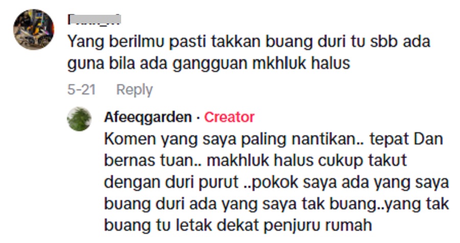 takkan buang duri tu sebab ada guna apabila ada gangguan makhluk halus,â