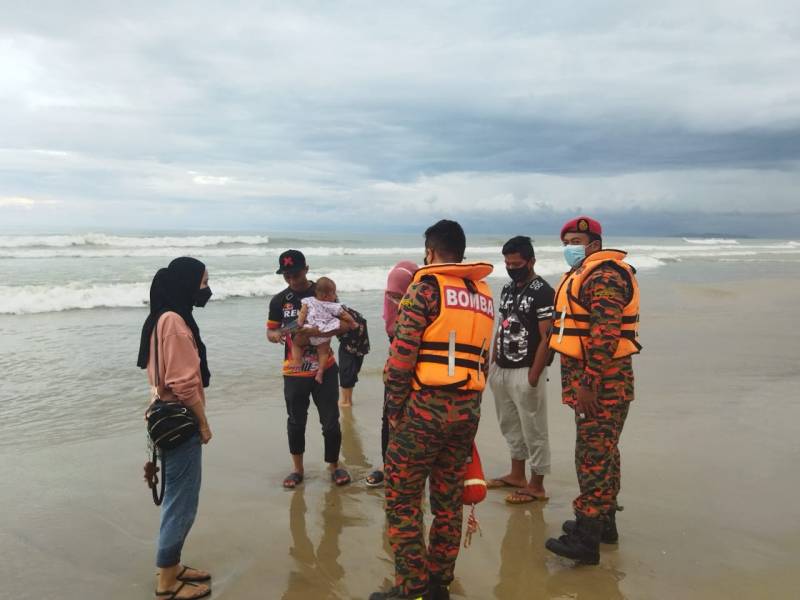 Anggota Bomba dan Penyelamat membuat pemantauan aktiviti orang ramai di pesisiran pantai
